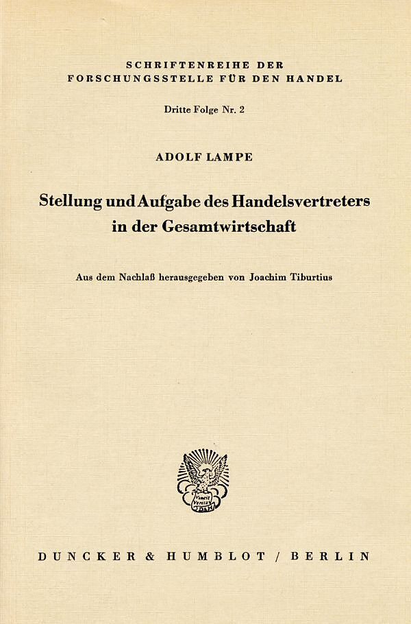 Stellung und Aufgabe des Handelsvertreters in der Gesamtwirtschaft