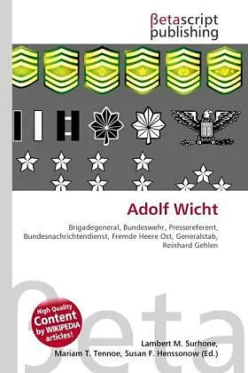 High Quality Content by WIKIPEDIA articles! High Quality Content by WIKIPEDIA articles! Adolf Wicht ( 19. Januar 1910; nach 1974) war Brigadegeneral der Bundeswehr und Pressereferent des Bundesnachrichtendienst in Hamburg. Wicht war auf der Kriegsschule in Pot...
