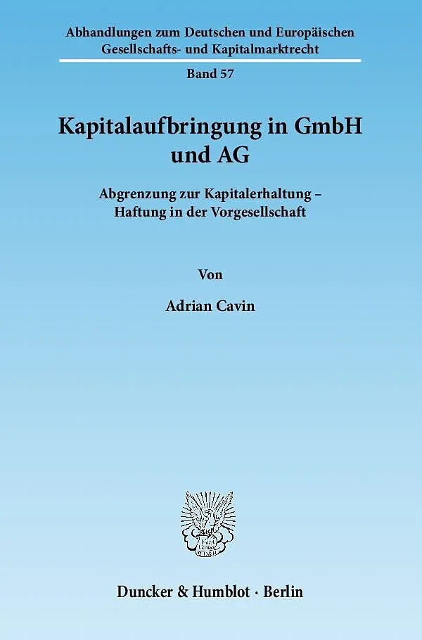 Die Arbeit beantwortet die kapitalaufbringungsrechtlichen Fragen des Leistungszeitpunkts der Einlagen, der Sacheinlage- und Sachübernahmefähigkeit, der Differenzhaftung des Sacheinlegers, der Vorbelastungshaftung der Gründer und der Auswirkungen von Verwendung...Die Arbeit beantwortet die kapitalaufbringungsrechtlichen Fragen des Leistungszeitpunkts der Einlagen, der Sacheinlage- und Sachübernahmefähigkeit, der Differenzhaftung des Sacheinlegers, der Vorbelastungshaftung der Gründer und der Auswirkungen von Verwendungsabreden (freie Verfügung / verdeckte Sacheinlage / Hin- und Herzahlen) abgestimmt mit den kapitalerhaltungsrechtlichen Wertungen unter Berücksichtigung der systematischen und wertungsmäßigen Zusammenhänge im Gesamtsystem der Kapitalaufbringung.