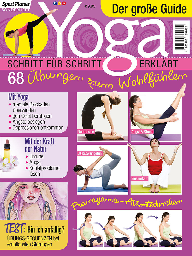 Leistungsdruck, Angst, Stress, Burn-out und Depressionen sind Themen, die unser hektischer Alltag mit sich bringt. Yoga beugt dem vor, lindert, heilt und wirkt sich positiv aus. Yoga-Körperhaltungen und Atemtechniken entspannen, erden und beruhigen Geist sowie...