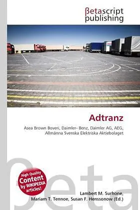 High Quality Content by WIKIPEDIA articles! High Quality Content by WIKIPEDIA articles! Die ABB Daimler Benz Transportation (Adtranz) war ein Zusammenschluss der Verkehrstechnik-Sparten von Asea Brown Boveri (ABB) und Daimler-Benz, der 1995 vereinbart und am 1...