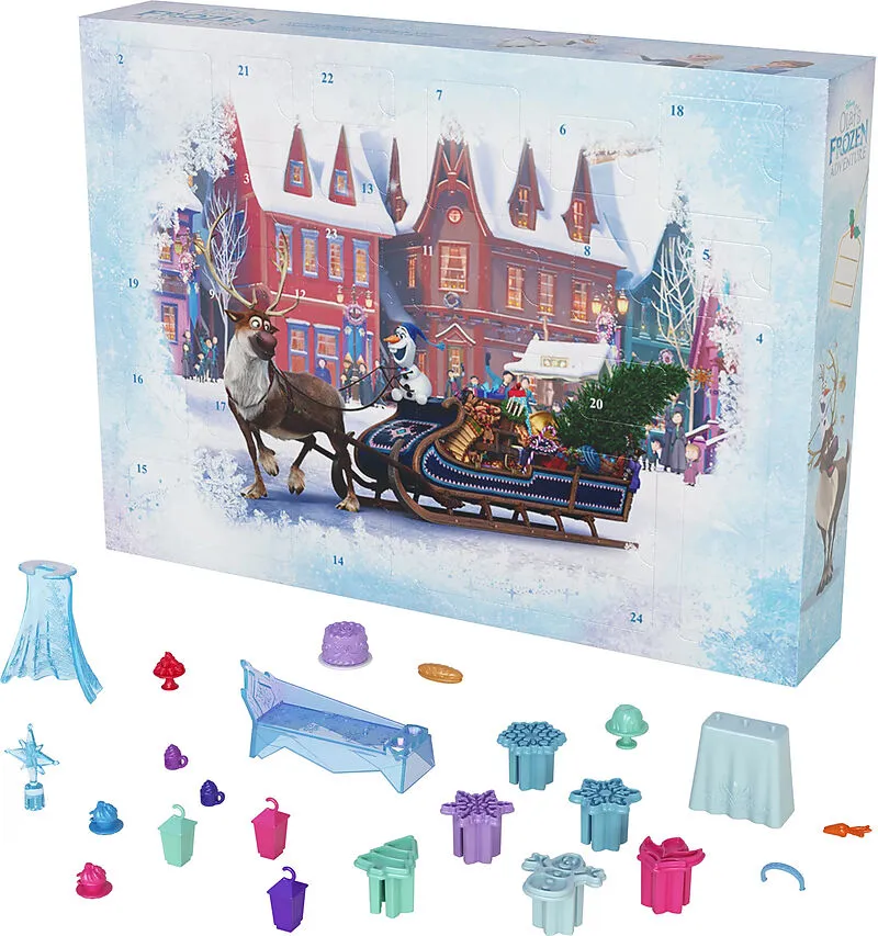 Disney Die Eiskönigin Adventskalender Mit dem Disney Die Eiskönigin Adventskalender können Kinder die Weihnachtszeit mit 24 Tagen voller Spaß so richtig genießen! Jeden Tag erwartet sie eine Überraschung, darunter kleine Anna- und Elsa-Puppen (ca. 9 cm) und Ol...