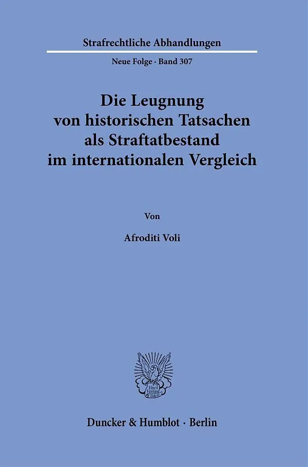 Die Arbeit behandelt die Leugnung historischer Tatsachen rechtsvergleichend. Die Autorin untersucht kritisch die herrschenden Schutzgüter der Leugnungtatbestände. Schutzwürdig sind andererseits die persönliche Sicherheit, die Freiheit von Furcht und das Recht ...