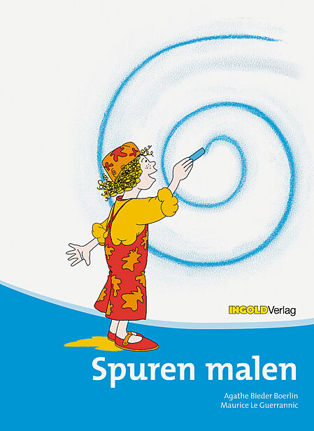 Set zu 5 Exemplaren Auf der linken Seite ist farbig eine Spur vorgegeben. Die Kinder übernehmen diese Spur und fahren ihr auf vielfältige Weise nach. Die gleiche Form in kleinerer Ausgabe findet sich als Musterband auf dem unteren Teil der Seite. Die rechte Se...