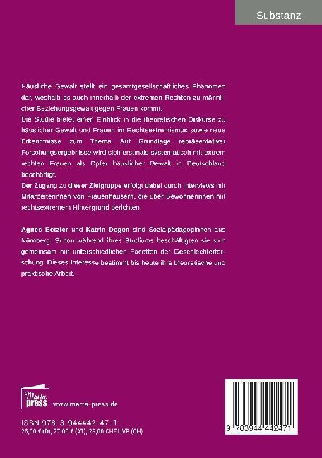 Häusliche Gewalt stellt ein gesamtgesellschaftliches Phänomen dar, weshalb es auch innerhalb der extremen Rechten zu männlicher Beziehungsgewalt gegen Frauen kommt. Die Studie bietet einen Einblick in die theoretischen Diskurse zu häuslicher Gewalt und Frauen ...
