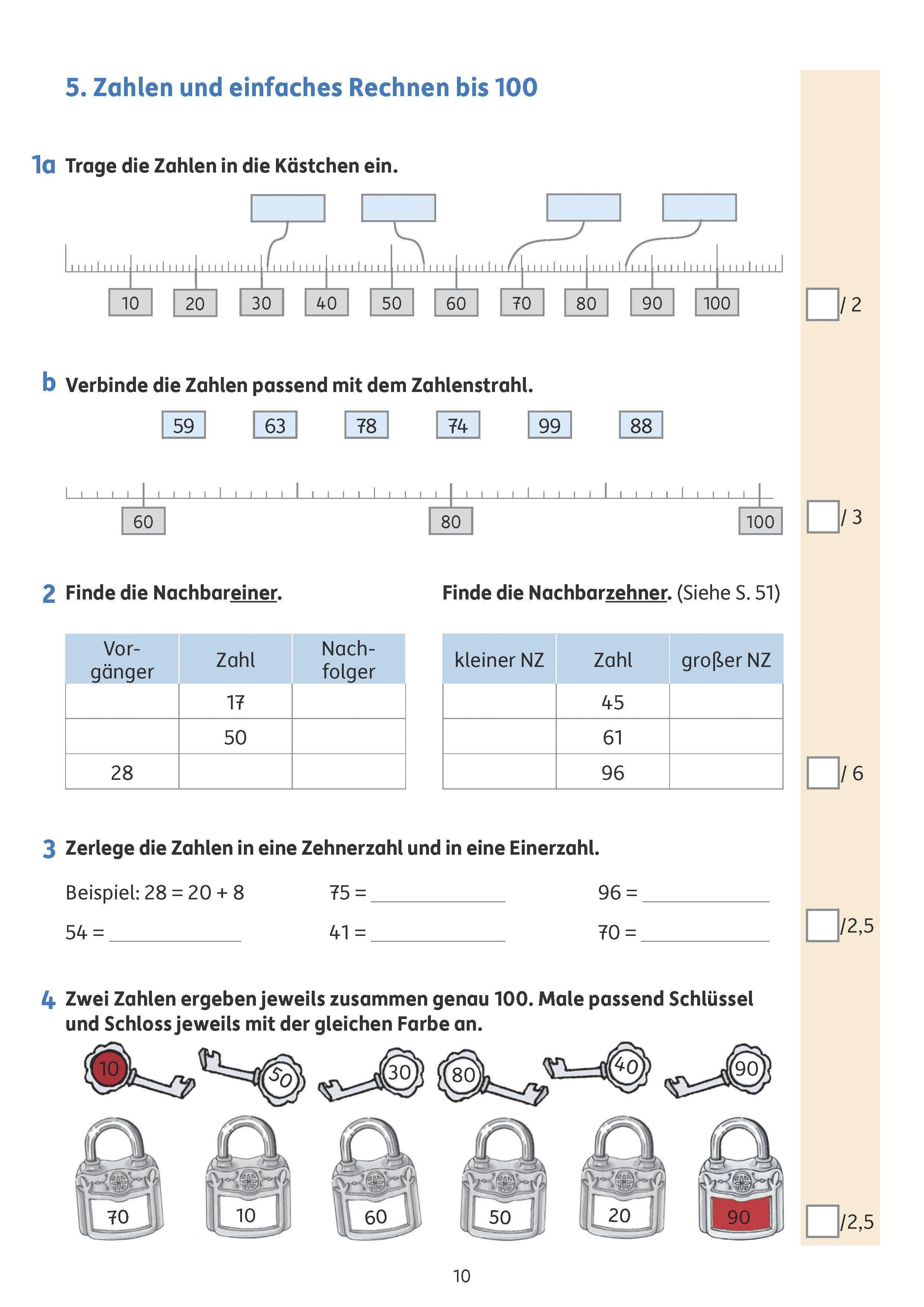Mathe 2. Klasse Lernzielkontrollen zur Vorbereitung auf Klassenarbeiten Üben und trainieren der mathematischen Lerninhalte der 2. Klasse Zahlenraum bis 100 Rechnen, Text- und Sachaufgaben, Größen (Geld, Längen und Zeiten), Flächen- und Körperformen, Wahrschein...