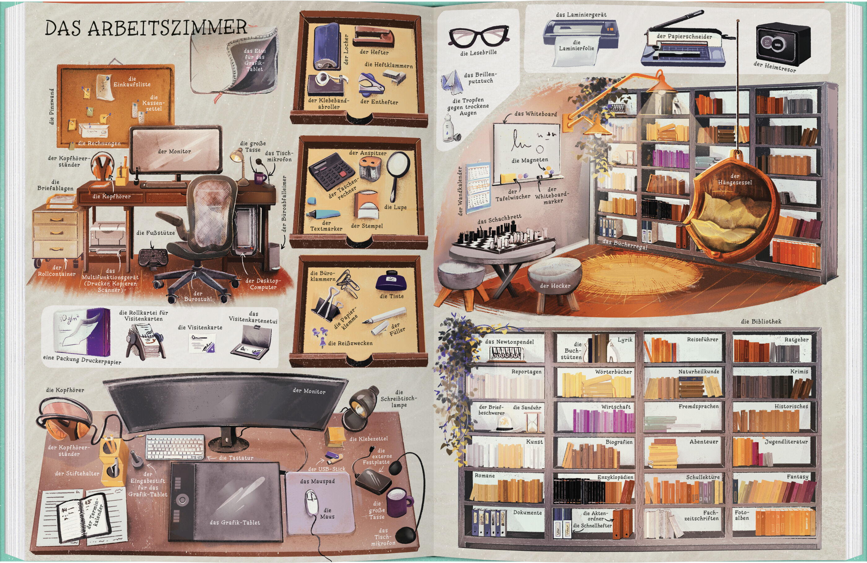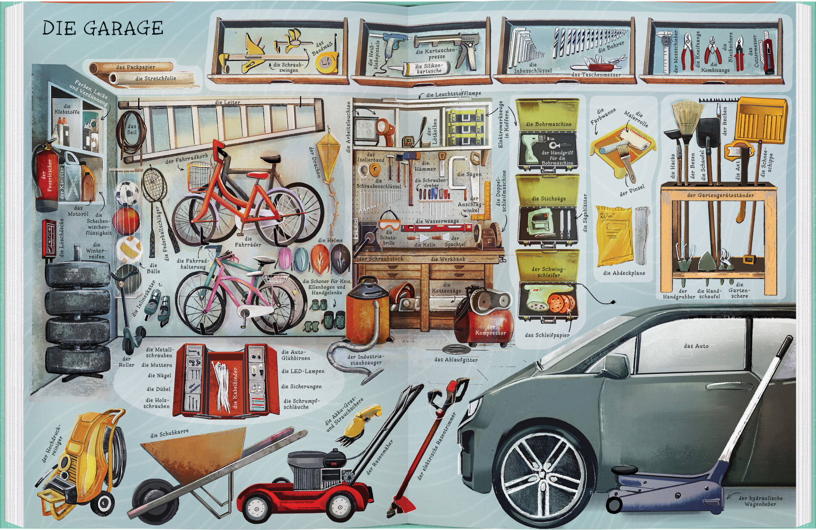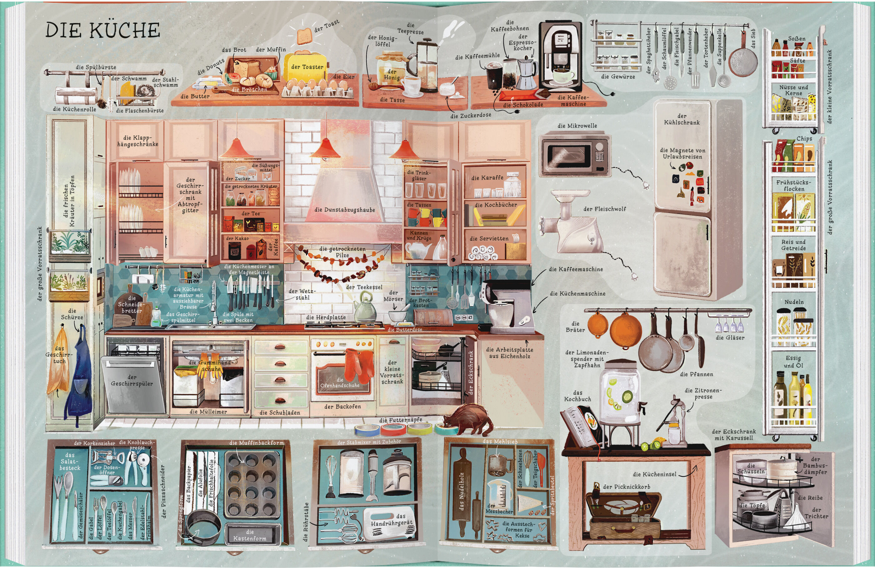 Das opulent illustrierte Bildwörterbuch zeigt uns sehr detailliert ein Haus und seine Einrichtung auf farbigen Doppelseiten. Alle Gegenstände sind genau und mit bestimmtem Artikel bezeichnet. Wer möchte wissen, was sich alles in einem großen Haus verbirgt? Mit...