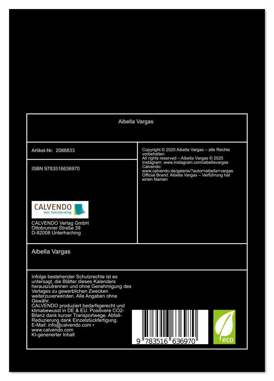 Der offizielle Kalender der heißesten Frau des Jahres Aibella, das ikonische Latexmodel mit Kultstatus. 12 exklusive High-End-Motive zeigen sie so sexy, sinnlich und stilvoll wie nie zuvor. Ob in Lack, Lingerie oder Bikini Aibella verkörpert Dominanz, Ästhetik...