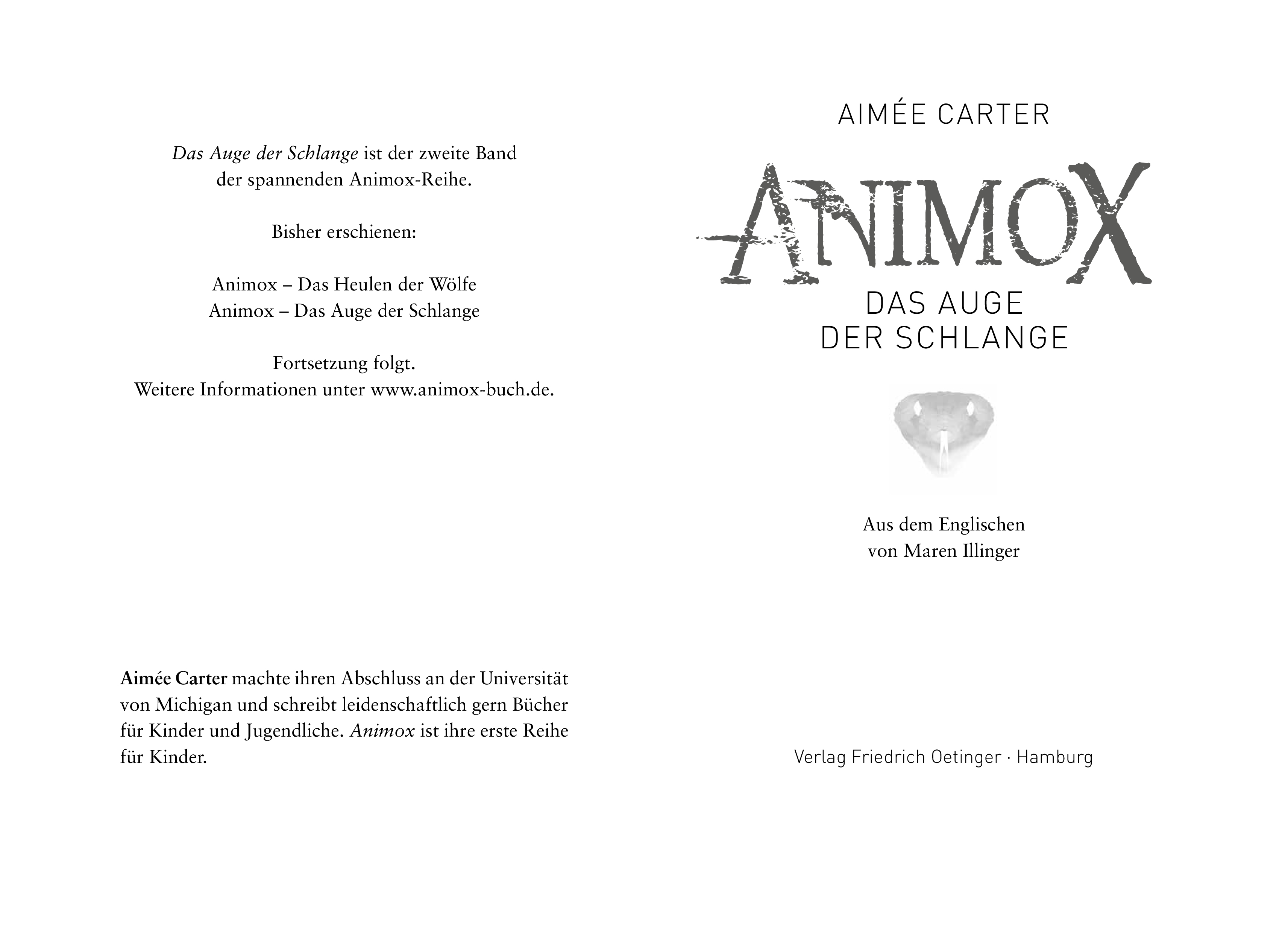 In "Animox 2. Das Auge der Schlange" setzt Aimée Carter die spannende Reise von Simon Thorn, einem Jungen, der die Gabe besitzt, sich in Tiere zu verwandeln, fort. Im Zentrum des zweiten Bandes steht Simons gefährliche Quest, die verschollenen Stücke der Waff...