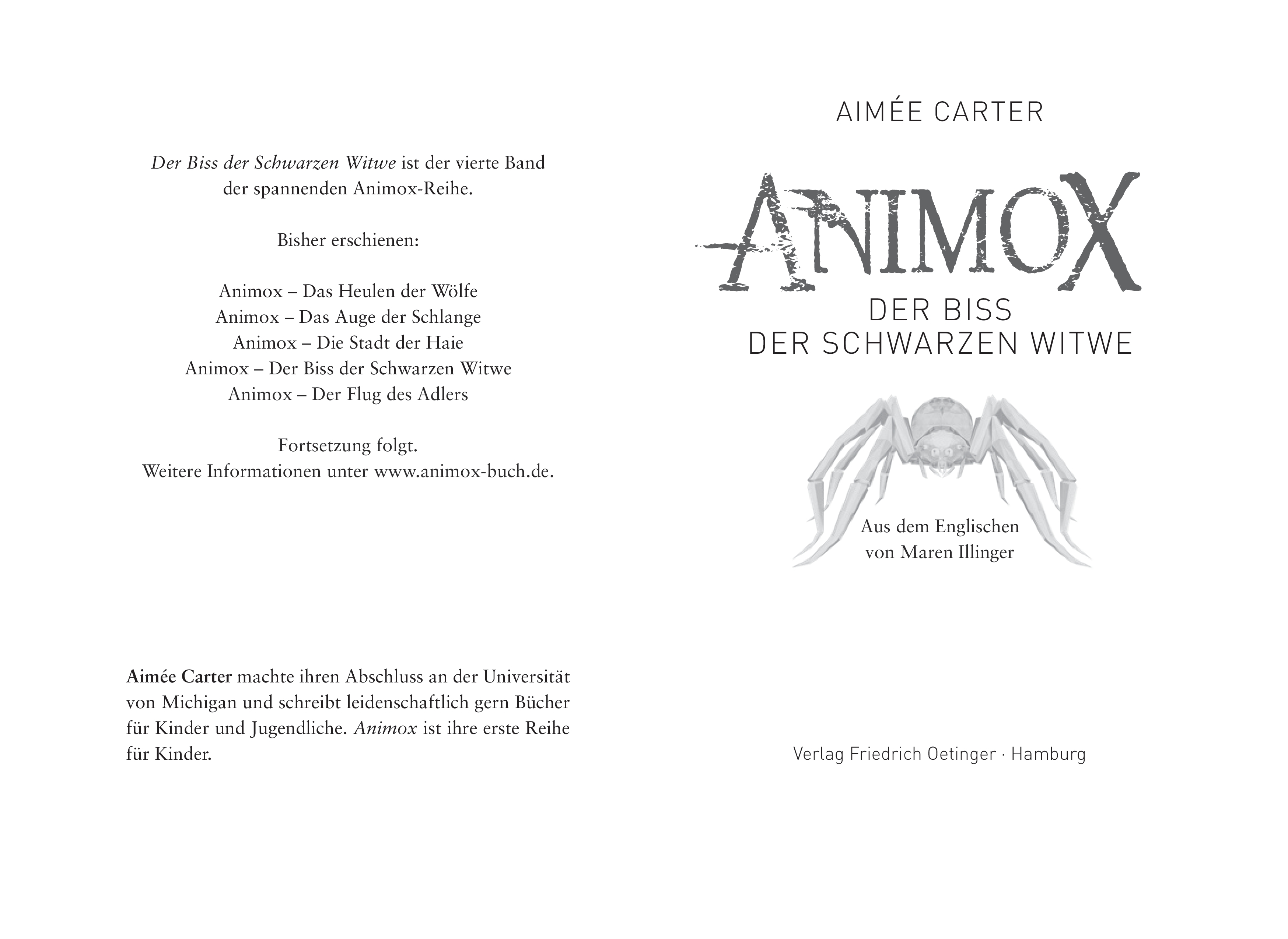 In "Animox 4. Der Biss der Schwarzen Witwe", dem vierten Band der fesselnden Tierwandler-Saga von Aimée Carter, findet sich der 12-jährige Simon Thorn einmal mehr im Herzen des Kampfes zwischen den Tierreichen wieder. Nach den gefährlichen Abenteuern im Schla...