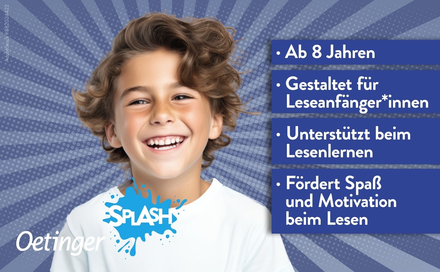 Ob Action, Abenteuer, Freundschaft oder Fantasy - die Bücher von Oetinger SPLASH sind perfekt auf die Interessen und Lesefähigkeiten von Kindern ab 7 Jahren abgestimmt. Witzige Comic-Elemente machen die Geschichte lebendig. Kurze und leicht verständliche Texte erleichtern das Lesen. Tolle Illustrationen unterstützen das Textverständnis und machen jedes Buch zu einem visuellen Erlebnis. Hier macht Lesen lernen Spaß!