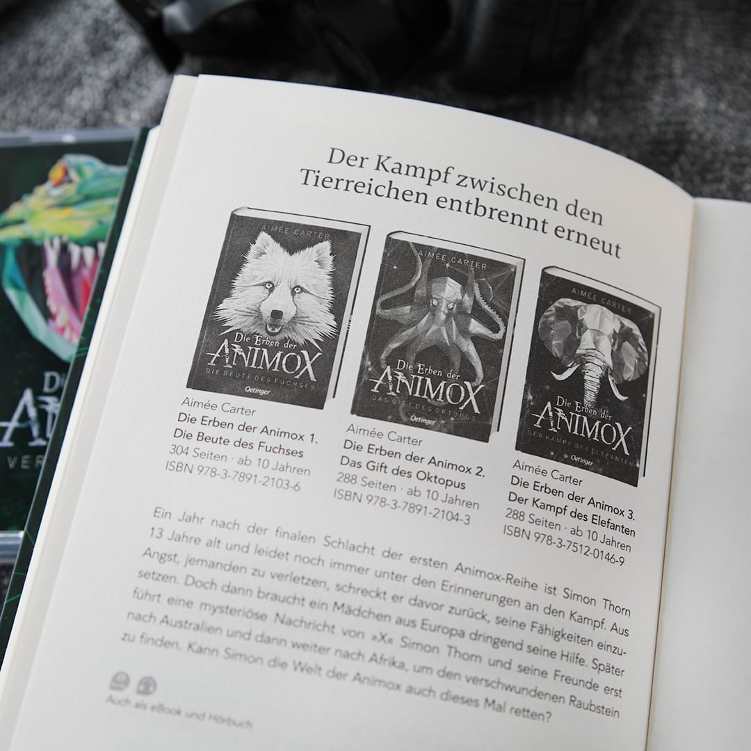 Die Erben der Animox 4. Die Täuschung des Kaimanen Nach der erfolgreichen Rettungsmission in der afrikanischen Serengeti führt das nächste Abenteuer Simon Thorn und seine Verbündeten in die unberührten Weiten Südamerikas, genauer gesagt in die dichten Regenwäl...