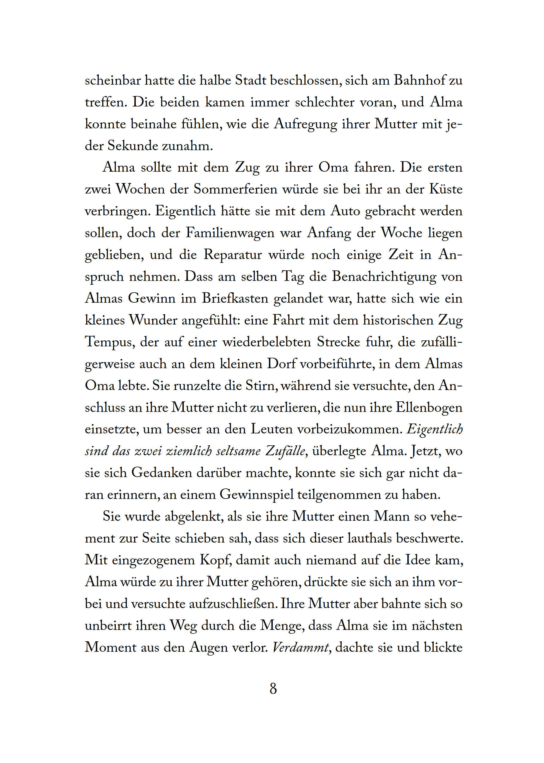 Eigentlich ist Alma auf dem Weg zu ihrer Oma, als sich im Zug eine Frau namens Mrs Newton zu ihr setzt. Das Seltsamste an ihr sind nicht die unzähligen Taschenuhren und Wecker, sondern dass sie ihr erklärt, Alma könne durch die Zeit reisen. Und nicht nur das:...