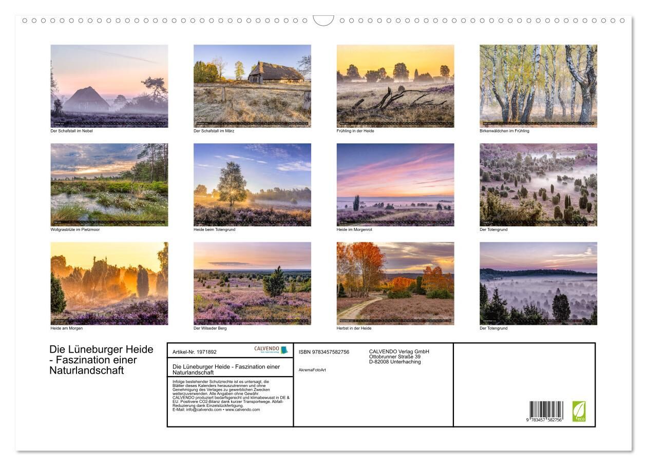 In diesem Kalender zeigt Ihnen der Autor die Attraktionen der Lüneburger Heide zu verschiedenen Jahreszeiten. Die beeindruckenden Bilder aus dem Herz der Lüneburger Heide sind geprägt von den violetten Blüten des Heidekrauts, Wacholder, Wollgras im Pietzmoor, ...