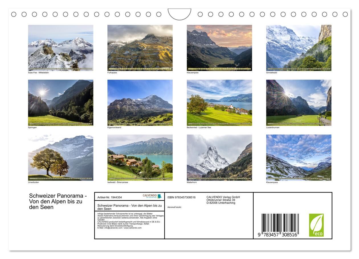 Schweizer Panorama - Von den Alpen bis zu den Seen (Wandkalender 2026 DIN A4 quer), CALVENDO Monatskalender