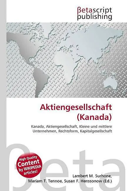 Please note that the content of this book primarily consists of articles available from Wikipedia or other free sources online. Die Corporation (Corp.) ist die kanadische Form der Aktiengesellschaft und ist in Kanada auch für kleine und mittlere Unternehmen di...