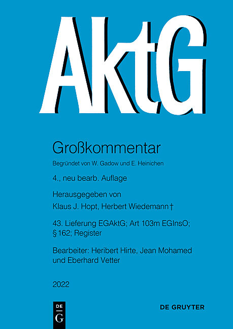Die neue Kommentierung des Einführungsgesetzes zum Aktiengesetz erläutert das Einführungsrecht sowohl materiell und normgeschichtlich als auch in seiner rechtspolitischen (teilweise über die Jahrzehnte entwickelten) Dimension. Die einführungsrechtliche Kommen...