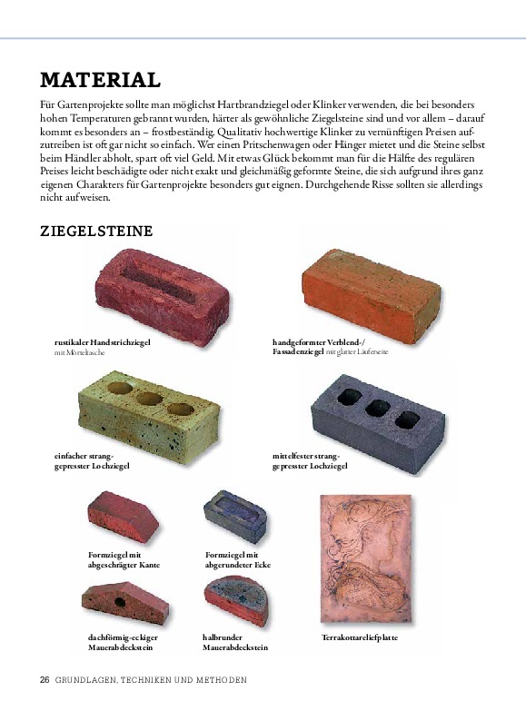 Ziegel sind ein ideales Material, um individuelle und gleichzeitig funktionelle Gartenelemente zu schaffen. Backsteinen wohnt eine besondere Schönheit inne antik, natürlich, optisch und haptisch schön, durch den Vintage-Charakter perfekt für Cottage- und Natur...