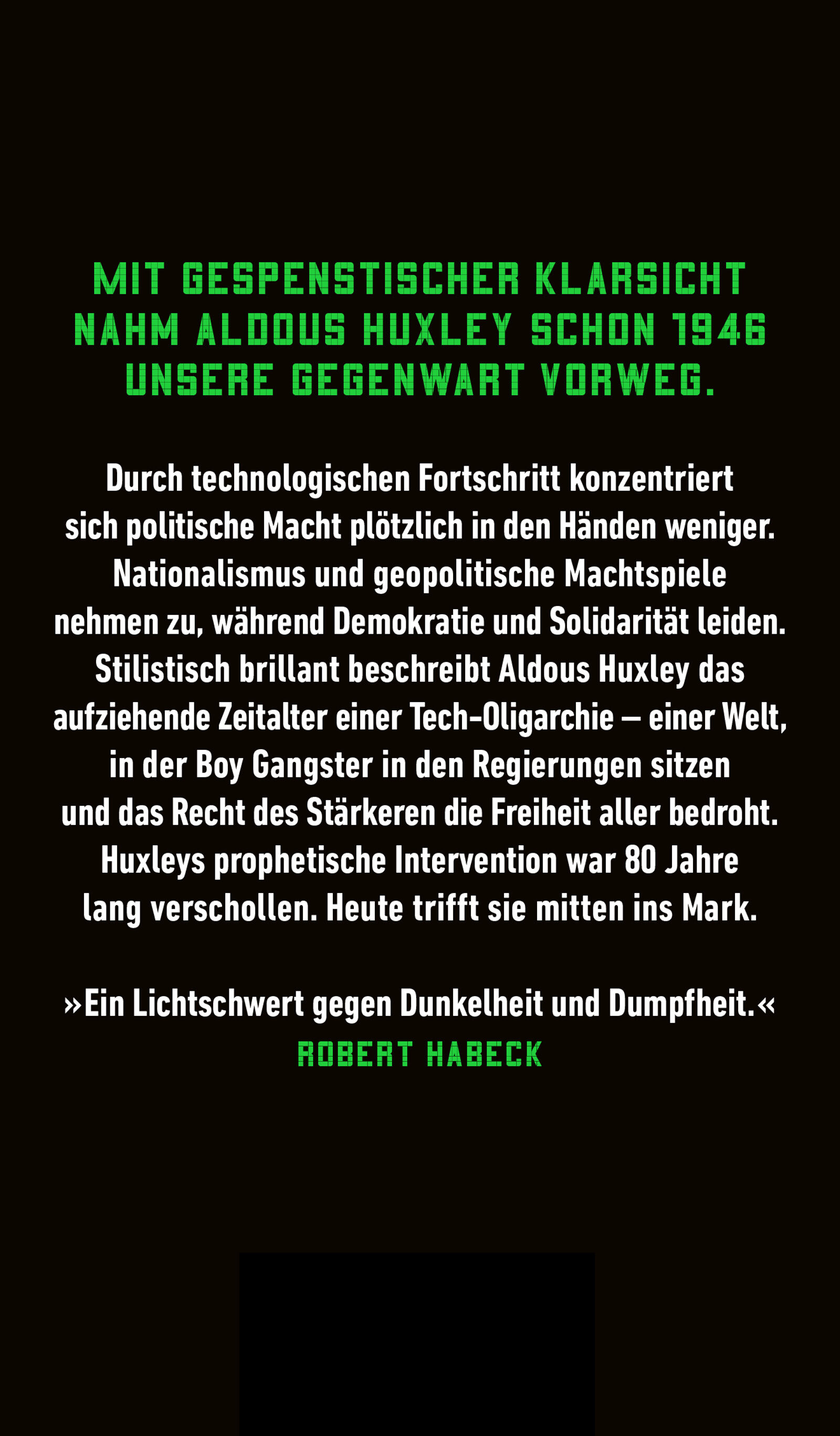 Der prophetische Essay über Tech-Oligarchen, Macht und Boy Gangster vom Autor von »Schöne neue Welt« »Vergessen Sie Orwell, lesen Sie Huxley!« Philipp Blom Mit gespenstischer Klarsicht nahm Aldous Huxley schon 1946 unsere Gegenwart vorweg: Durch technologische...64 Kunden haben diesen Artikel kürzlich gekauft.