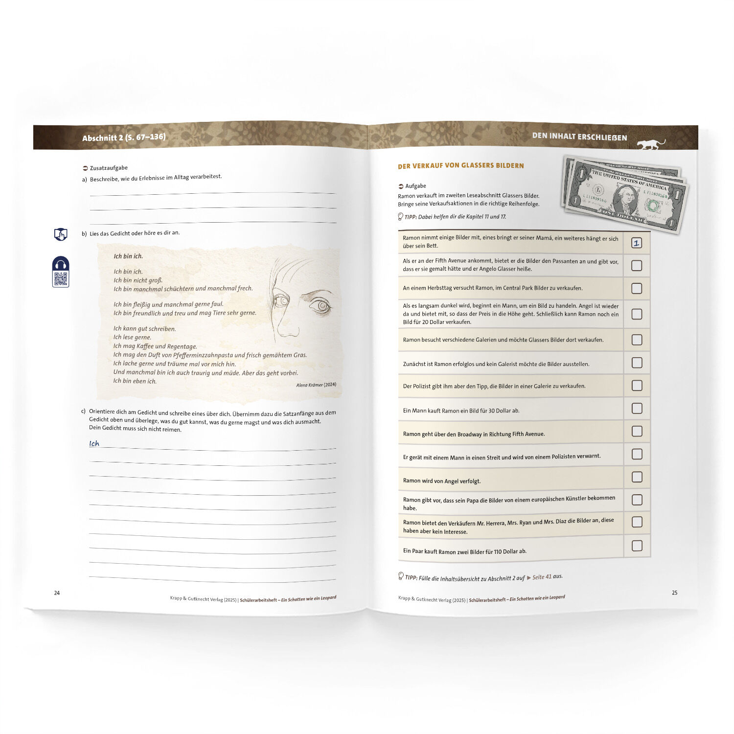 Pflichtlektüre in Baden-Württemberg für den Hauptschulabschluss 2026. Unser Schülerarbeitsheft begleitet bei der Erschließung der Ganzschrift Ein Schatten wie ein Leopard von Myron Levoy und deren Themen. Das Unterrichtsmaterial mit abwechslungsreichen Aufgab...