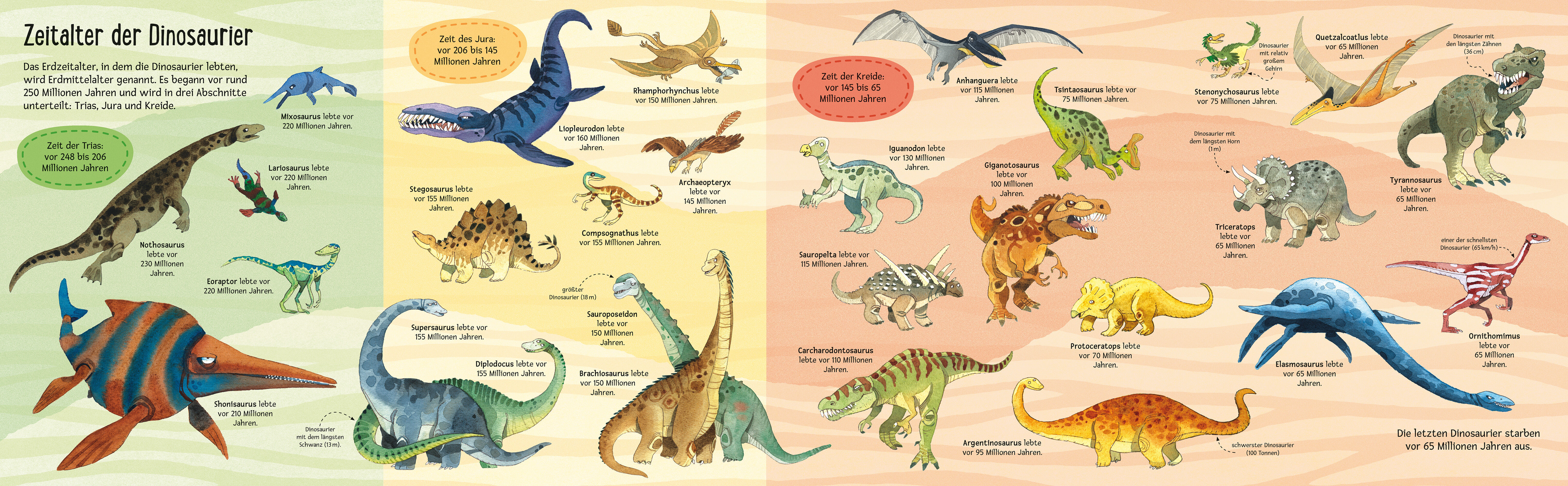 Kleine Dinos, große Dinos Dinosaurier waren die größten Landtiere, die je auf der Erde gelebt haben. Öffne die riesigen Ausklappseiten und entdecke einige der längsten, schwersten und furchterregendsten Saurier vom mächtigen Brachiosaurus bis zum gefräßigen Ty...