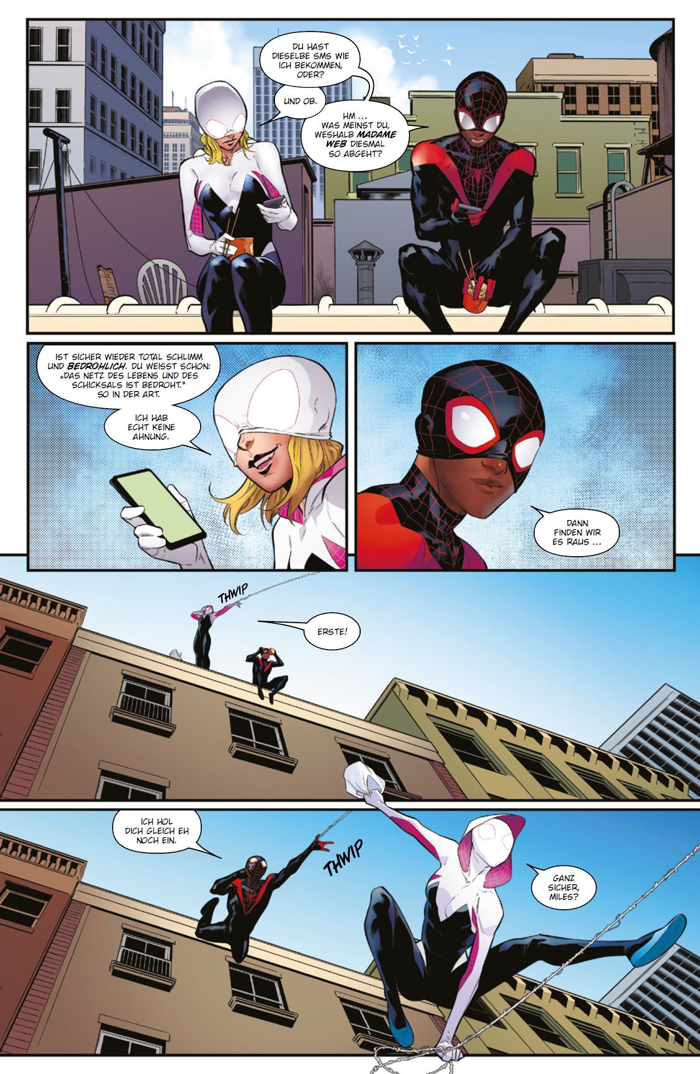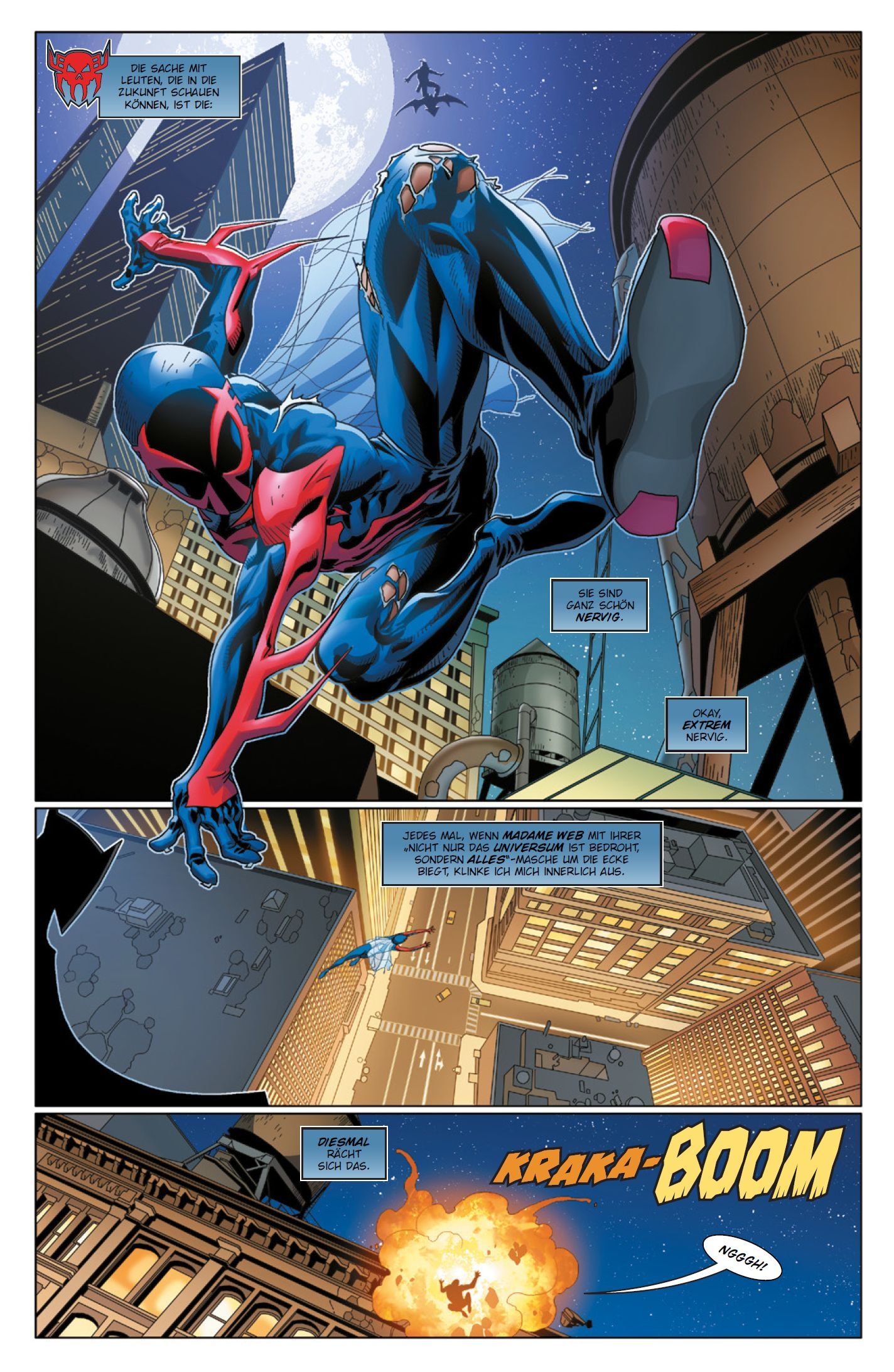 Zahlreiche Spider-Man-Varianten in einem Comic. SCHURKENARMEE IM SPIDER-VERSE Madame Web spürt, dass dem Spider-Verse eine gewaltige Gefahr droht. Daher versammelt sie die Spider-Society um Spider-Man 2099 und andere Netzschwinger aus allen Wirklichkeiten. Doc...