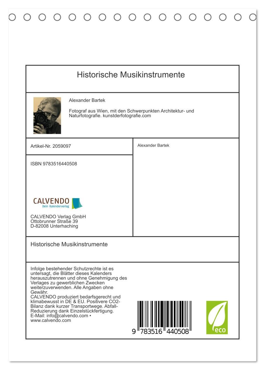 Historische Musikinstrumente (Tischkalender 2026 DIN A5 hoch), CALVENDO Monatskalender
