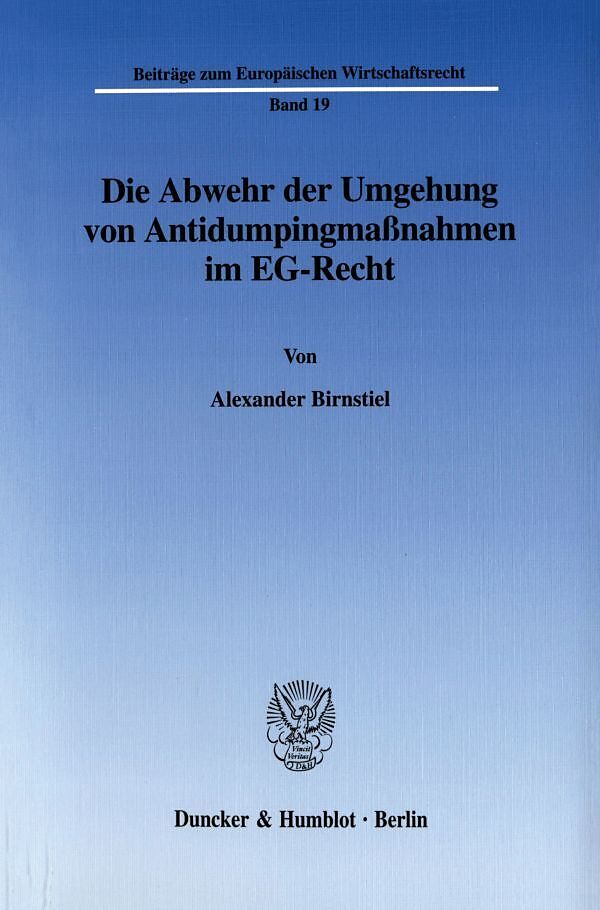 Der Autor beleuchtet die sich im EG-Recht anbietenden Ansatzpunkte für die Abwehr der Umgehung von Antidumpingmaßnahmen, einem seit Jahren heiß umstrittenen Thema des internationalen Wirtschaftsrechts. Dabei wird die neu eingeführte Umgehungsabwehrvorschrift d...