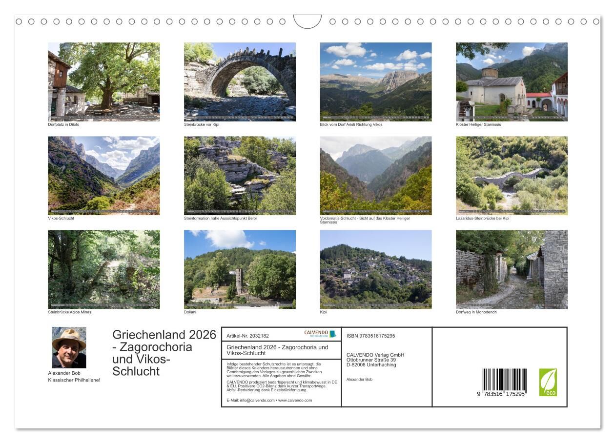 Griechenland 2026 - Zagorochoria und Vikos-Schlucht (Wandkalender 2026 DIN A3 quer), CALVENDO Monatskalender