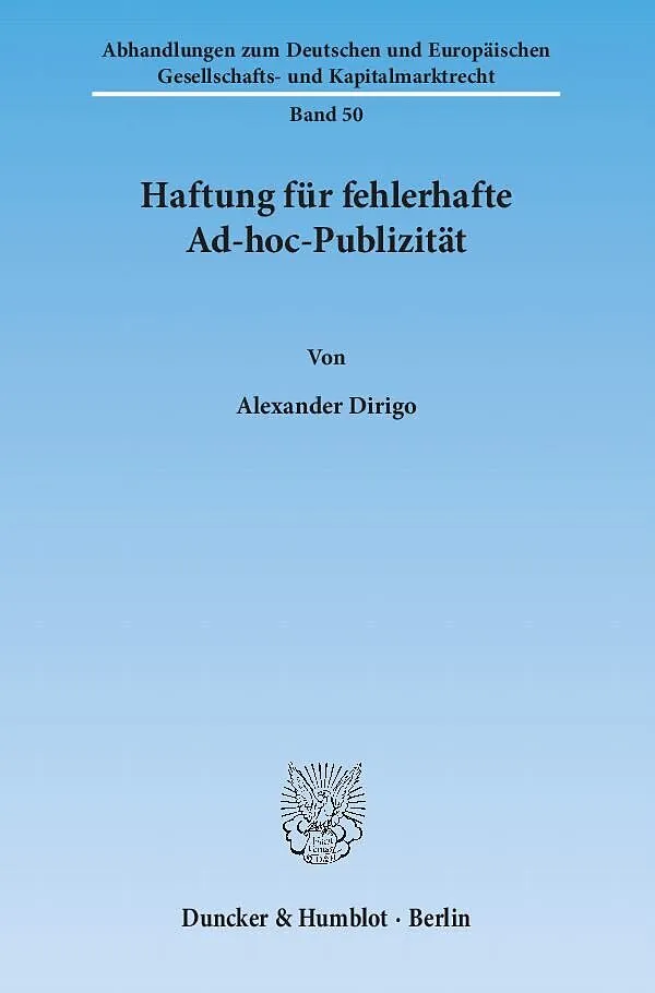 Alexander Dirigo behandelt im Schwerpunkt den ersatzfähigen Schaden, die Anforderungen an die Kausalität und den Kreis der Anspruchsberechtigten bei der Haftung wegen fehlerhafter Ad-hoc-Publizität. Untersucht wird, ob die im Jahr 2002 eingeführten §§ 37b, 37c...