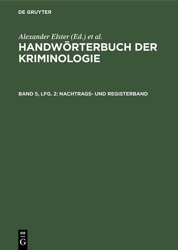 Keine ausführliche Beschreibung für "Nachtrags- und Registerband" verfügbar. Frontmatter -- ALTERSKRIMINALITÄT -- COMPUTERKRIMINALITÄT -- DIVERSION -- ABOLITIONISMUS -- MASSENMEDIEN -- KINDESMISSHANDLUNG -- LADENDIEBSTAHL -- SACHBESCHÄDIGUNG -- SEE- ...