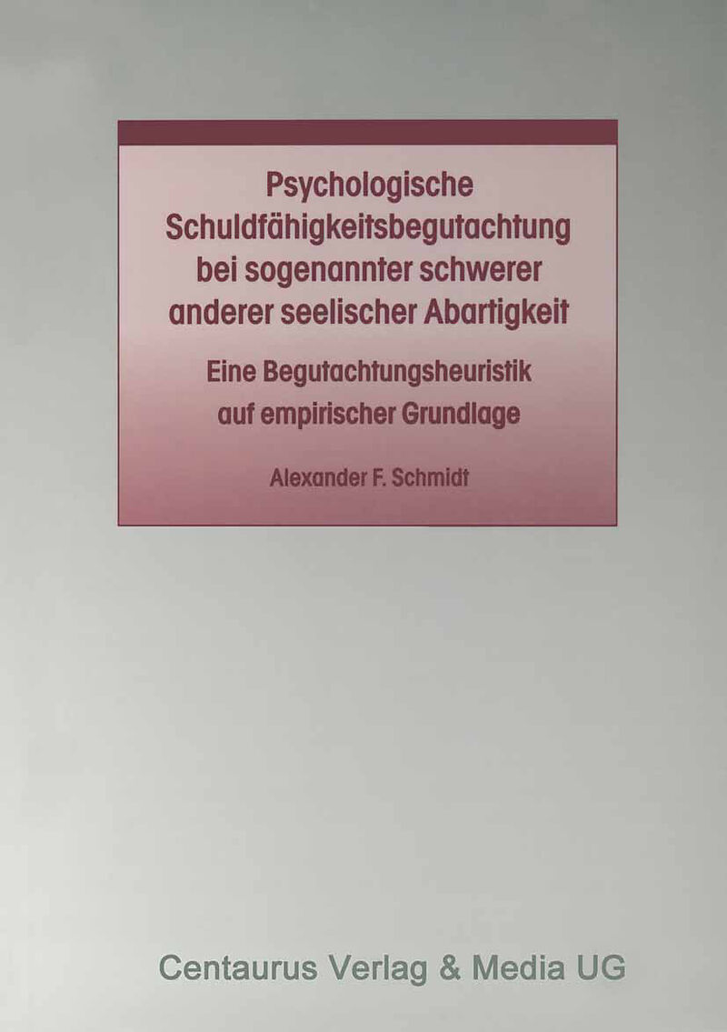Angesichts der Häufigkeit und Tragweite der Schuldfähigkeitsbegutachtung bei sogenannter schwerer anderer seelischer Abartigkeit (SASA) ist eine wissenschaftlich fundierte Methodenentwicklung Grundvoraussetzung psychowissenschaftlicher Sachverständigentätigkei...