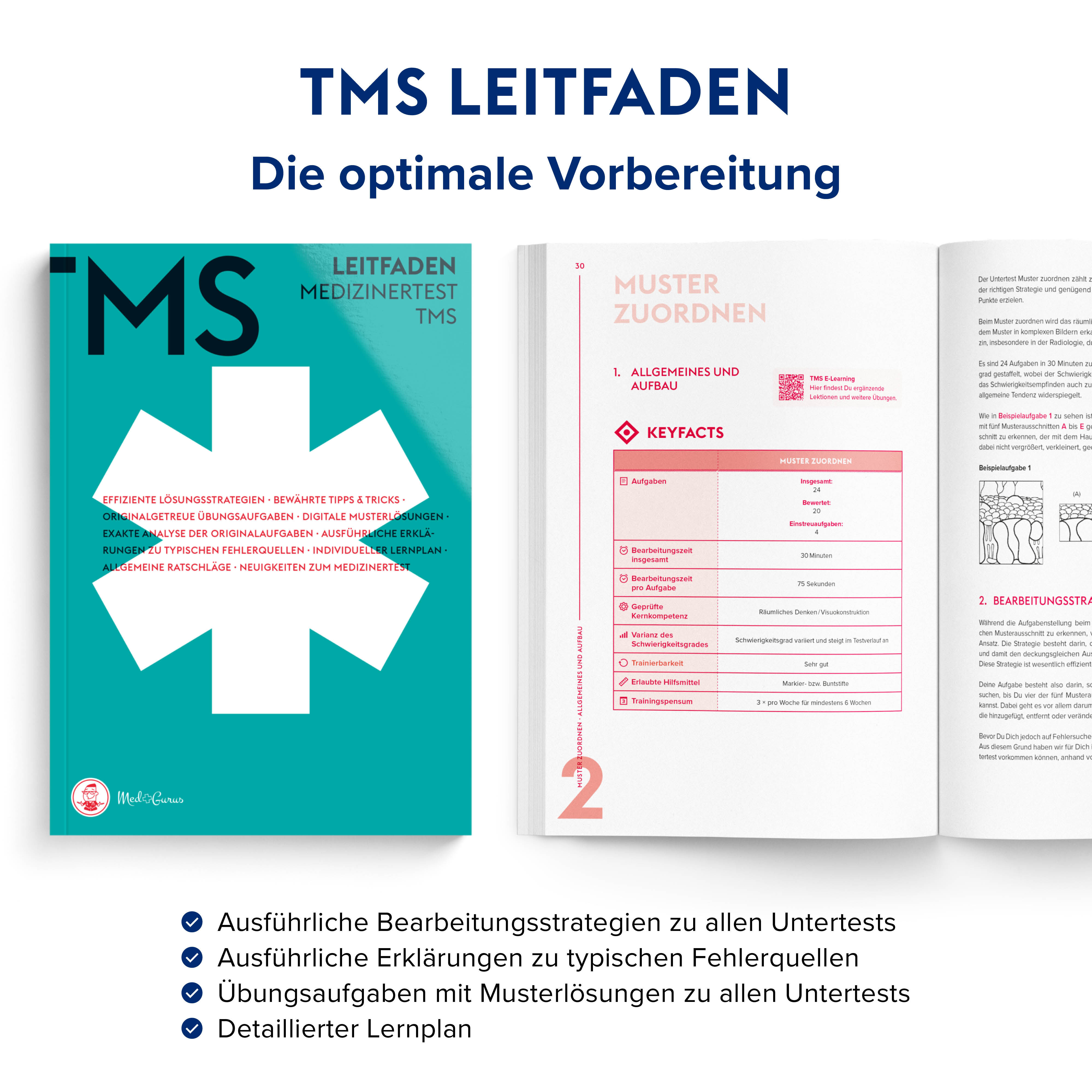 TMS Vorbereitung Leitfaden Der TMS Leitfaden bietet eine umfassende Vorbereitung auf den Medizinertest TMS (Test für medizinische Studiengänge) in Deutschland. Der Leitfaden enthält: Bearbeitungsstrategien zu allen Untertests Übungsaufgaben zu allen Untertest...