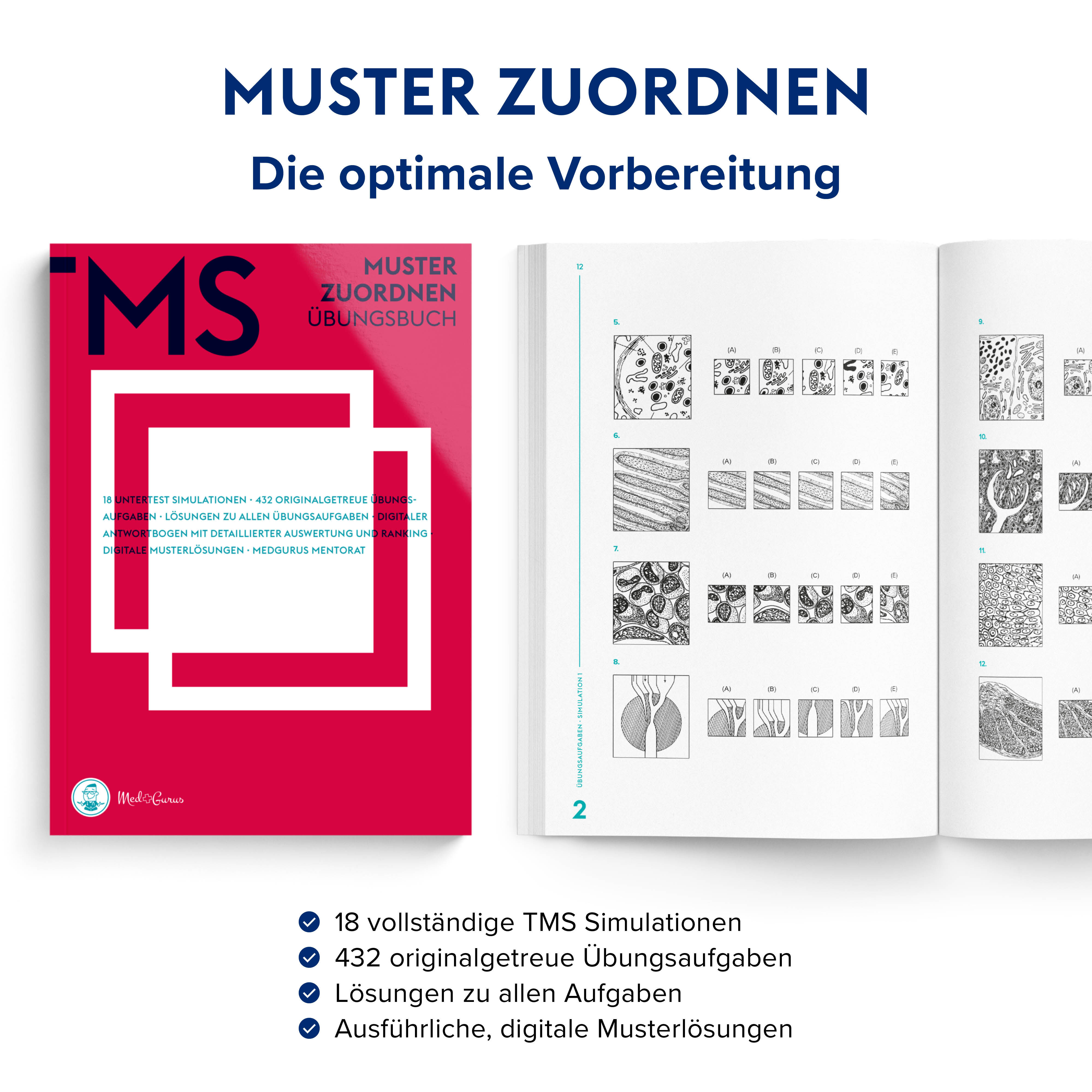 TMS Vorbereitung Wir bringen Dich ins Studium! Mit dem TMS Übungsbuch Muster zuordnen kannst Du Dich optimal auf den Untertest Muster zuordnen im Medizinertest TMS in Deutschland vorbereiten. Wir begleiten Dich auf Deinem Weg ins Medizinstudium! Das Übungsbuc...