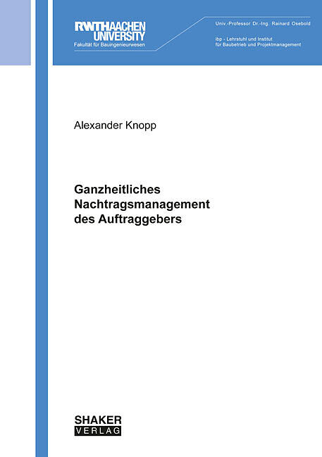 Mit der Dissertation wird ein ganzheitliches Nachtragsmanagementsystem für professionelle Auftraggeber der Bauprojektabwicklung gestaltet, das sowohl eine detaillierte Beschreibung der Nachtragsmanagementaufgaben samt Prozessdarstellungen und -beschreibungen u...