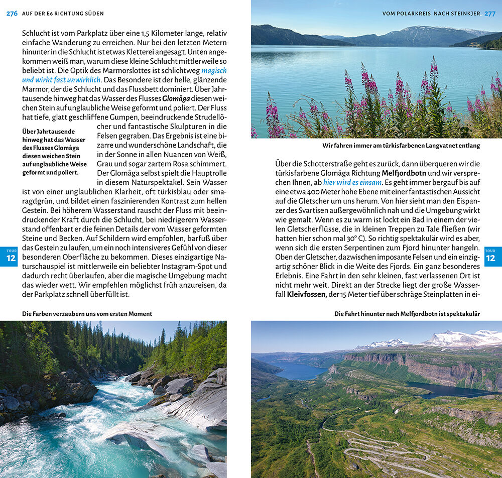 Unsere persönlichen Top Ten. . . . . . . . . . . . . . . . . . . . . . . . . . . . . . . . . . 6 Gebrauchsanleitung.. . . . . . . . . . . . . . . . . . . . . . . . . . . . . . . . . . . . . . . . . . 8 Tour 1: Bergbauromantik Dovrefjell und Røros.. . . . . . . . . . . . . . . . . . . . . . . . . . . . . . . . . . . . . . . . 14 Dombås Dovrefjell Oppdal Tynset Røros Støren Tour 2: Auf den Spuren des Mittelalters Trondelag.. . . . . . . . . . . . . . . . . . . . . . . . . . . . . . . . . . . . . . . . . . . . . . . . . . 28 Trondheim Steinvikholmen Levanger Stiklestad Inderøy Straumen Steinkjer Bessaker Rørvik Leka Tour 3: Kystriksveien Die Landschaftsroute Helgelandskysten. . . . . . . . . . . . . . . . . . . 54 Holm Brønnøysund Torghatten Vega Tjøtta Levang Grønsvik Kilboghavn Svartisen Storvik Saltstraumen Bodø Tour 4: Die Trauminseln Lofoten .. . . . . . . . . . . . . . . . . . . . . . . . . . . . . . . . . . . . . . . . . . . . . . . . . . . . 84 Å Moskenes Reine - Ramberg Nusfjord Leknes Borga Eggum Henningsvær Svolvær Laukvik Raftsund Fiskebøl Tour 5: Ruhige Inselwelt Vesterålen.. . . . . . . . . . . . . . . . . . . . . . . . . . . . . . . . . . . . . . . . . . . . . . . . 108 Melbu Stokmarknes Sortland Myre Nyksund Stø Bø Straume Stave Andenes Sortland Sigerfjord Tour 6: Insel mit zwei Gesichtern Senja. . . . . . . . . . . . . . . . . . . . . . . . . . . . . . . . . . . . . . . . . . . . . . . . . . . . . . . 138 Sørrollnes Ånderdalen Nationalpark Gryllefjord Hamn Skaland Mefjord Husøy Botnhamn Tour 7: Arktische Karibik Kvaløya, Tromsø und die Lyngenalpen. . . . . . . . . . . . . . . . . . . . . . 156 Brensholmen Sommarøy Erstfjordbotn Grøtfjord Tromsø Svensby Lyngseidet Tour 8: Der Weg in den Norden Lyngenalpen bis Hammerfest.. . . . . . . . . . . . . . . . . . . . . . . . . . . . . 180 Olderdalen Skjervøy Storslett Øksfjord Alta Hammerfest Inhaltsverzeichnis Tour 9: Im Norden des Kontinents Nordkap und Umgebung bis Varanger.. . . . . . . . . . . . . . . . . . . . 200 Olderfjord Havøysund Honnigsvåg Nordkap Trollheimsund Lakselv Ifjord Mehamn Tana Bru Varangerbotn Vadsø Vardø Hamningberg Tour 10: Durch das Land der Sámi Die Finnmarksvidda. . . . . . . . . . . . . . . . . . . . . . . . . . . . . . . . . . . . . . . 238 Kirkenes Neiden Bugøynes Varangerbotn Karasjok Kautokeino Alta Tour 11: Zurück über den Polarkreis Auf der E6 von den Lyngenalpen zum Polarkreis. . . . . . . . . . . 252 Olderdalen Skibotn Gratangen Narvik Skarstad Drag Fauske Rognan Polarkreis Tour 12: Auf der E6 Richtung Süden Vom Polarkreis nach Steinkjer.. . . . . . . . . . . . . . . . . . . . . . . . . . . . 274 Marmorslottet Melfjordbotn Grønligrotta Svartisen Mo i Rana Hemnesberget Mosjøen Grong Steinkjer Tipps und Infos .. . . . . . . . . . . . . . . . . . . . . . . . . . . . . . . . . . . . . . . . . . . . 293 Anreise · Angeln · Campingplätze · Freies Camping · Übernachtungsplätze · Gas · Geld · Geschichte · Navigation · Haustiere · Landkarten · Lebensmittel · Mücken · Notfälle · Preise · Rad fahren · Reisezeit · Klima · Restaurants · Sehenswürdigkeiten · Telefonieren · Toiletten · Ver- und Entsorgung · Unfall · Verkehr · Straßenverhältnisse · Maut · Fähren · Tankstellen · Wanderungen Stichwortverzeichnis.. . . . . . . . . . . . . . . . . . . . . . . . . . . . . . . . . . . . . . 329 Tourenübersicht.. . . . . . . . . . . . . . . . . . . . . . hintere Umschlagklappe