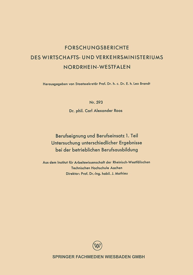 Berufseignung und Berufseinsatz 1. Teil Untersuchung unterschiedlicher Ergebnisse bei der betrieblichen Berufsausbildung