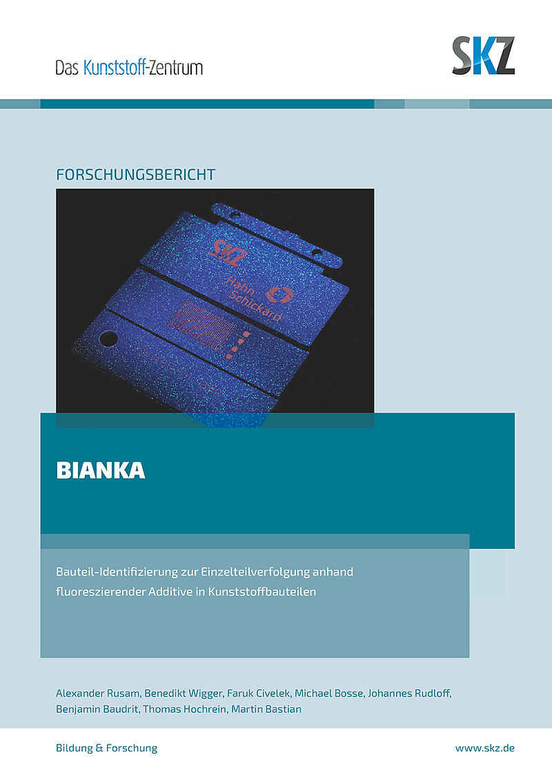 Im Projekt BIANKA wurde ein Verfahren zur Einzelteilverfolgung bei Bauteilen aus thermoplastischen Kunststoffen entwickelt. Für die Untersuchungen wurden in verschiedene Kunststoffe anorganische Fluoreszenzpartikel eingearbeitet, die bei normalem Tageslicht ni...