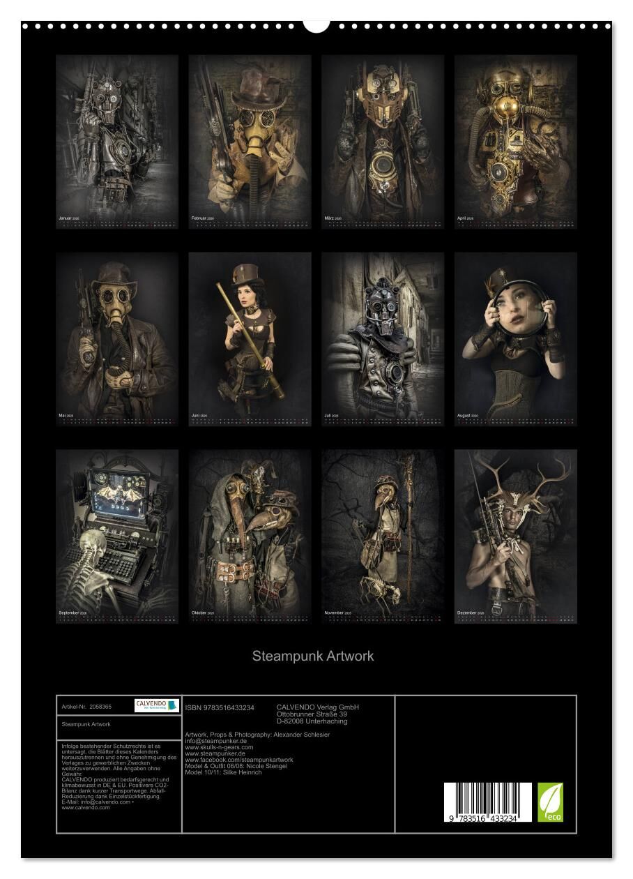 Ein wundervoller, mystischer Kalender mit außergewöhnlichen Steampunk Arbeiten des Künstlers und Fotografen Alexander Schlesier. Zwölf Motive mit handgefertigten Steampunk Kostümen und Accessoires.