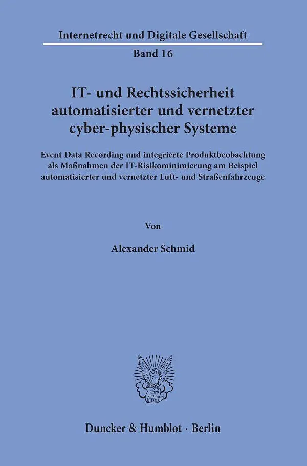 Cyber-physische Systeme (»CPS«) wie selbstfahrende PKW oder selbstfliegende Drohnen bevölkern zunehmend unsere Straßen und unseren Himmel. Den sich hieraus ergebenden Gefahren kann insbesondere durch das sog. Event Data Recording und die »integrierte« Produktb...