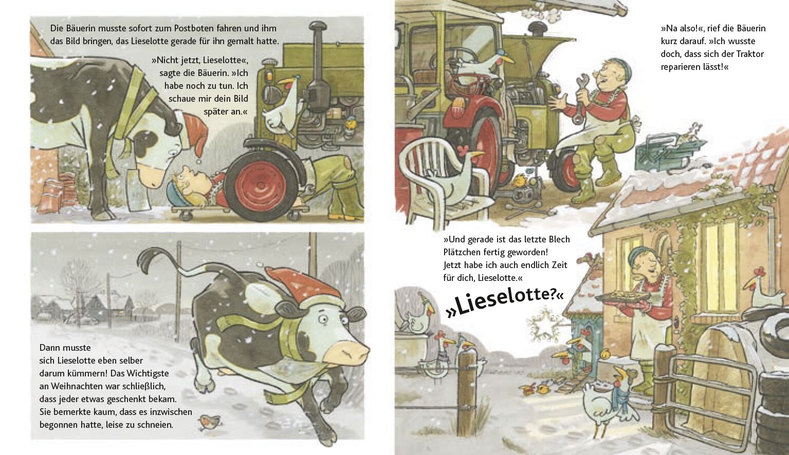 Lieselotte Weihnachtskuh. Die Miniausgabe, die in jeden Adventskalender passt. Endlich ist Heiligabend! Lieselotte will mit dem Postboten noch die letzten Pakete verteilen, und dann steht der Weihnachtsfeier auf dem Hof nichts mehr im Weg. Aber da entdeckt si...