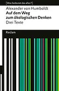 Das ökologische Denken Humboldts wird in drei Textauszügen vor Augen geführt: anhand einer frühen Reise des jungen Humboldt, seiner großen Reise in die amerikanischen Tropen und schließlich seiner Russisch-Sibirischen Forschungsreise. Für Humboldt begreift da...