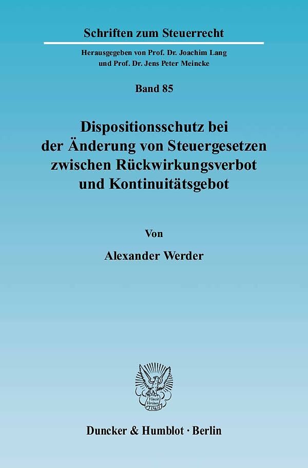Alexander Werder versucht zu klären, wann die Erwartungen des Steuerpflichtigen auf die Beständigkeit des Steuerrechts verfassungsrechtlich geschützt sind. Ein Grundsatz des Vertrauensschutzes ist abzulehnen, da sich dem Vertrauensgedanken keine Kriterien entn...