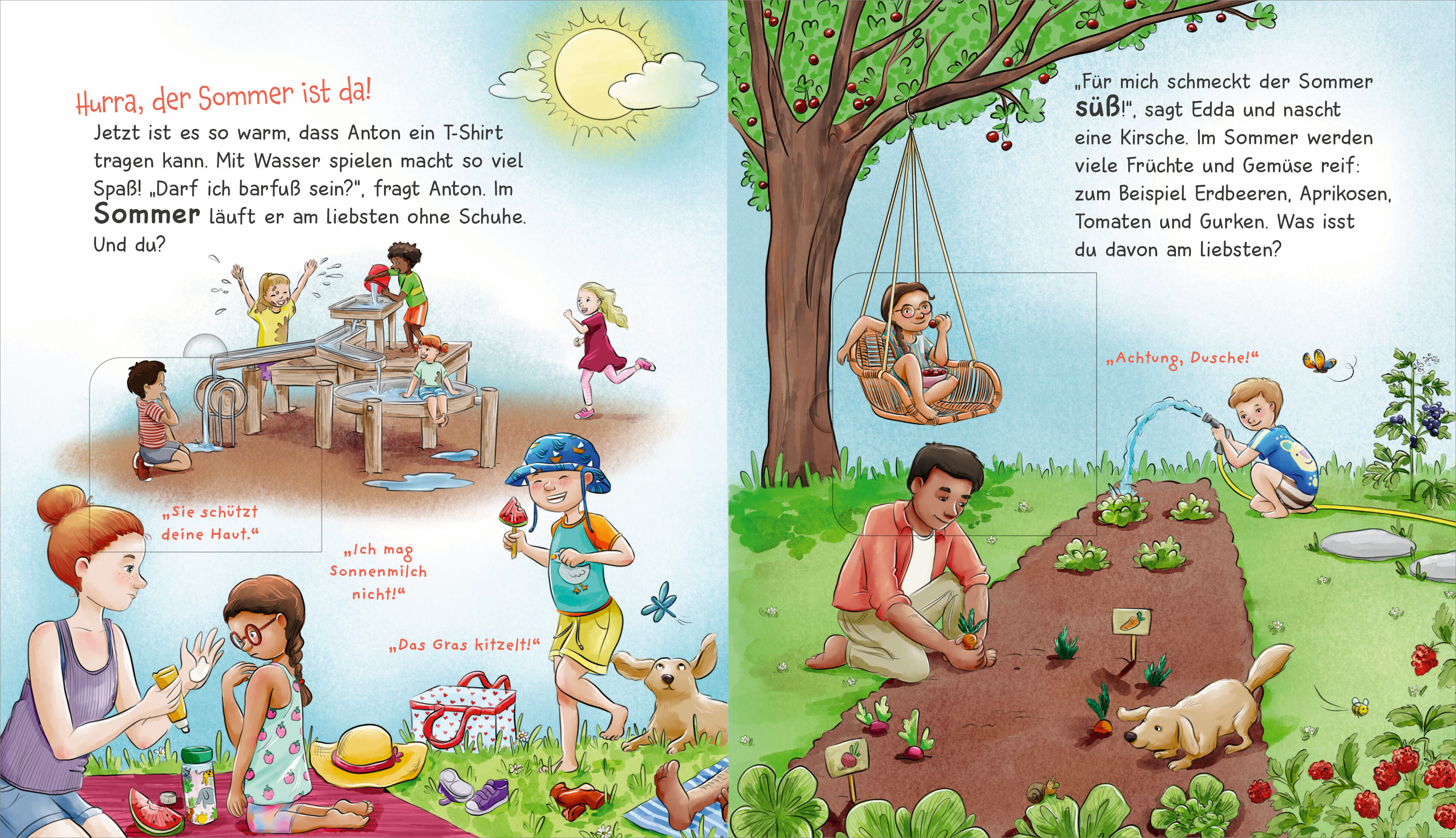 Wow, so schön blüht der Kirschbaum im Frühling! Die Blüten schmücken den Garten und alles beginnt zu wachsen. Im Sommer wird es heiß: Zeit für Eis, Abkühlung am Wasser und natürlich leckere Kirschen. Der Herbst färbt die Blätter des Baumes rot und gelb, was fü...