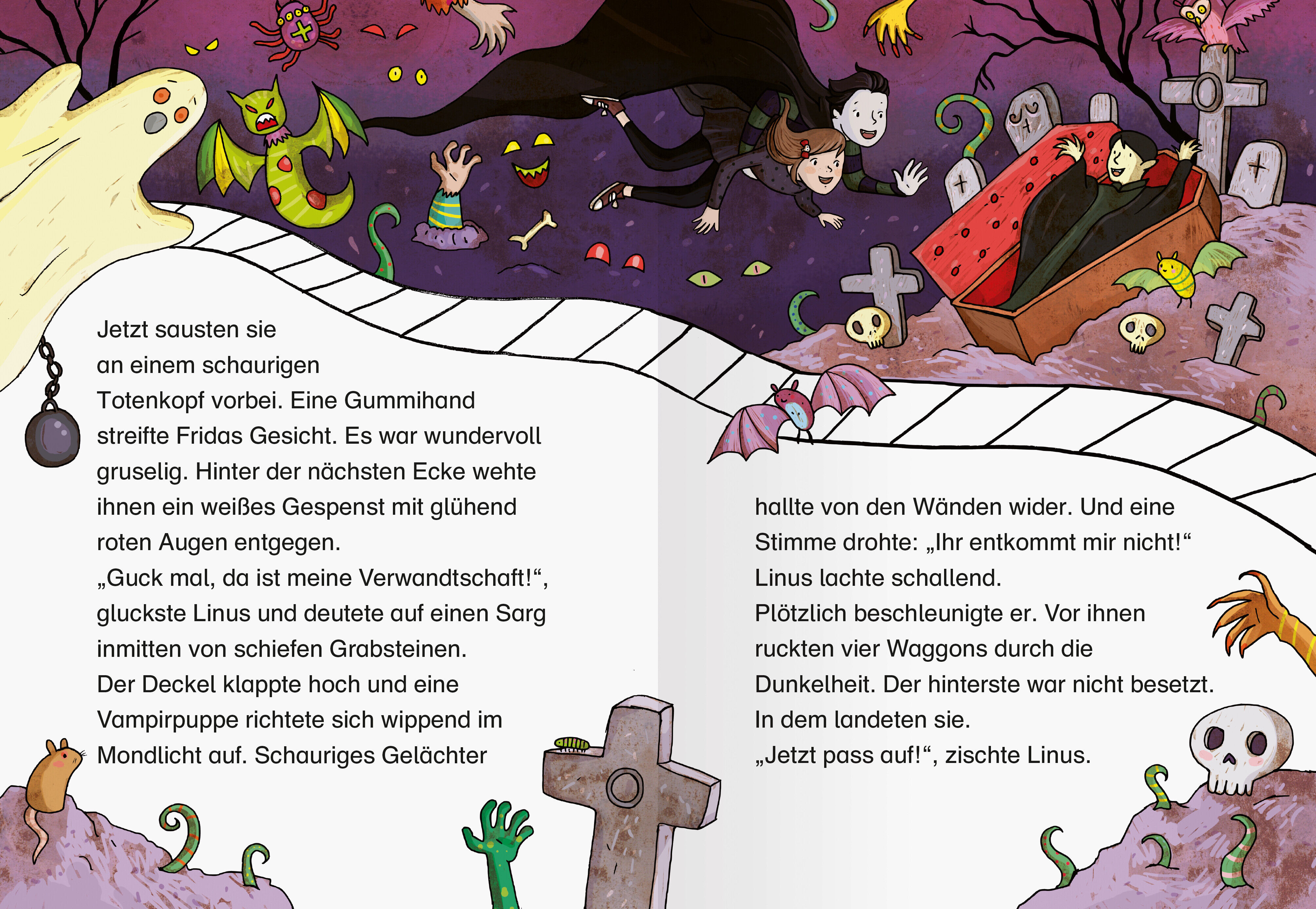 Lesen lernen wie im Flug! Vorsicht, Gruselgefahr! Bei Merle spukt es. Zum Glück ist Geisterjäger Henry zur Stelle. Noah und Juli beobachten in einem geheimnisvollen alten Haus seltsame Dinge und Frida hat eine unglaubliche Vermutung Ist Linus ein echter Vampir...