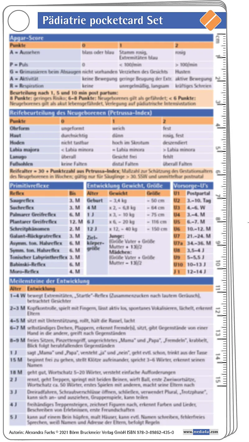 • Entwicklung: von Apgar bis Tanner • Normalwerte: Labor- und Vitalparameter • Impfschema: aktuell gemäß STIKO • Rehydratation: oral und parenteral • Differenzialdiagnose und Therapie: das Wichtigste immer dabei • Im Notfall: Rean...
