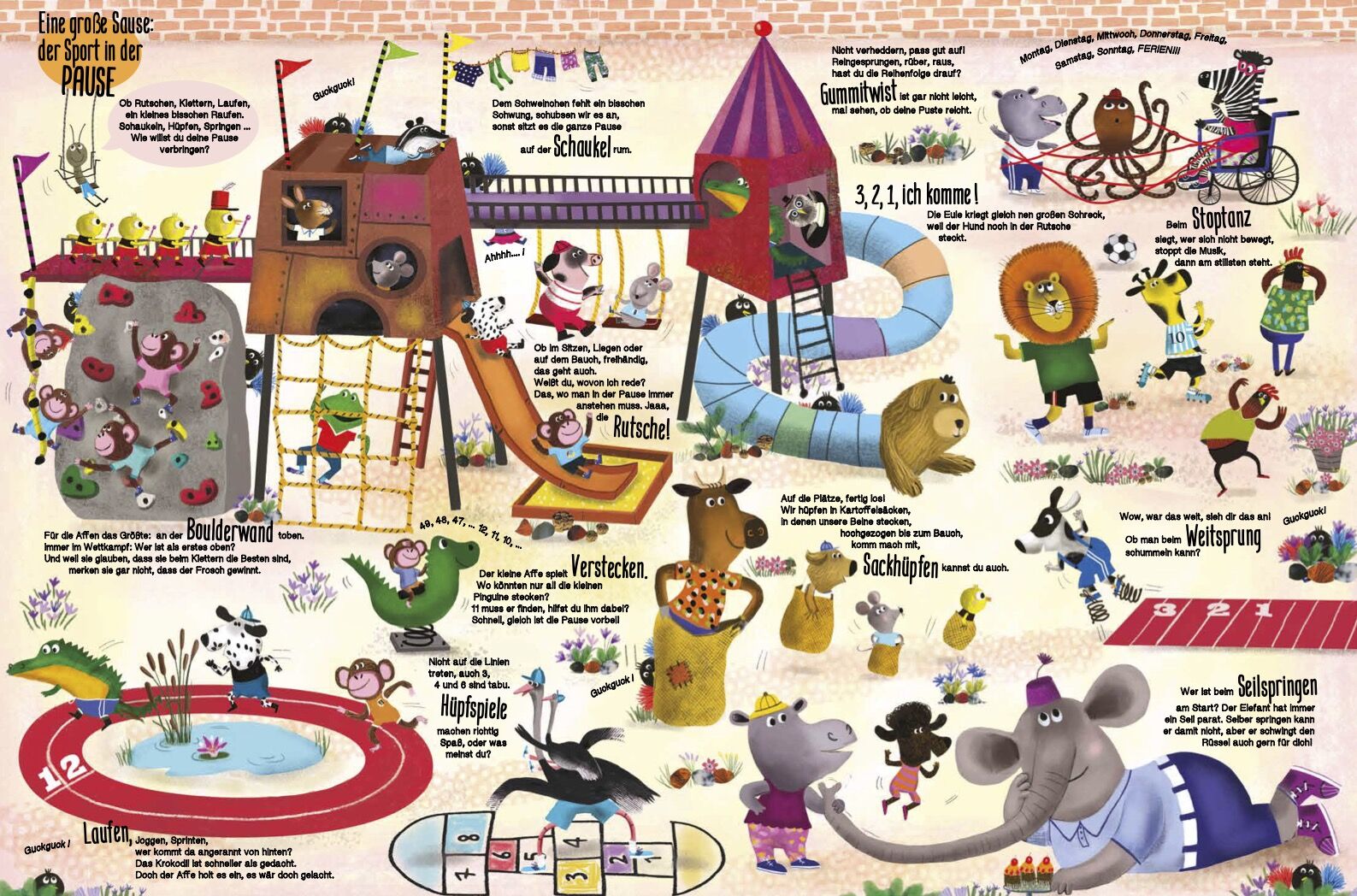 • Der 4. Band der erfolgreichen Wimmelbuch Serie • Mit vielen lustigen Tieren und Details zum Entdecken • Kurze Reime • Auf humorvolle Weise die verschiedenen Sportarten kennenlernen Dieses Buch macht einfach Spaß nicht nur den Kindern ... ...