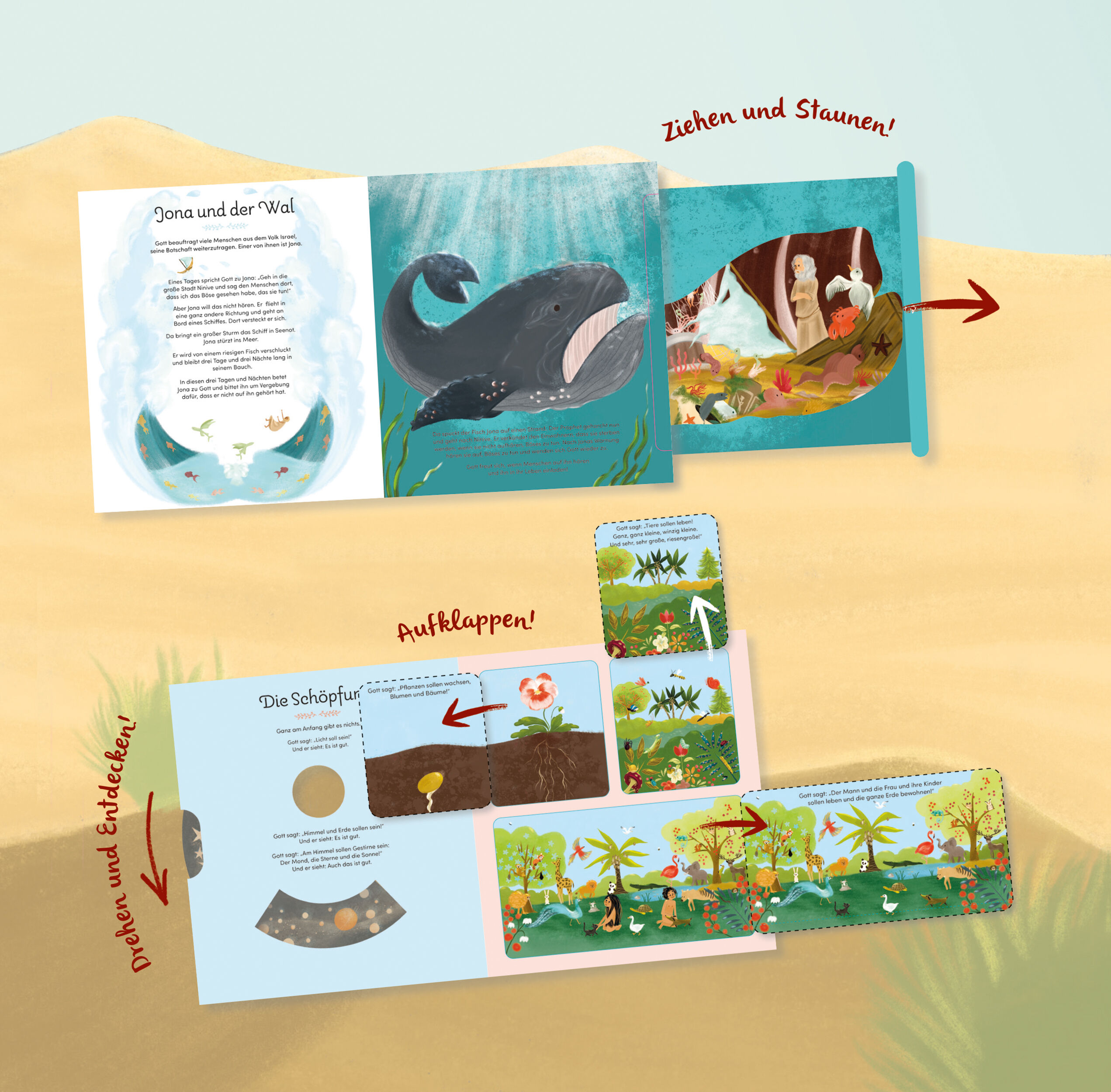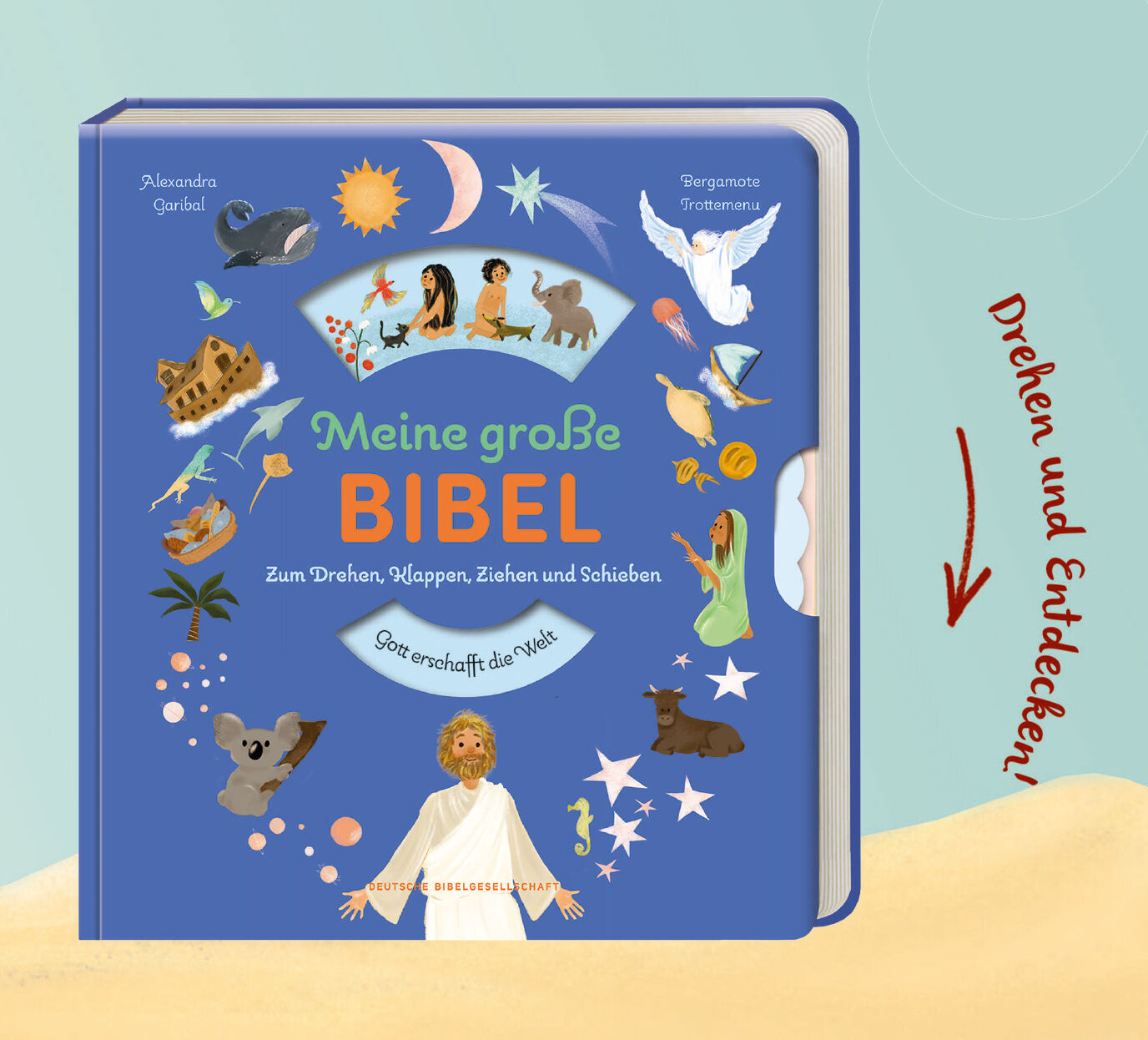 Jede Seite ein biblischer Spielplatz - Die interaktive Premium-Kinderbibel Kinderhände dürfen mitmachen bei dieser Kinderbibel. Was verbirgt sich hinter der nächsten Klappe? Was erscheint im Fenster, wenn ich das Rad weiterdrehe? Ein Bibelbuch voller Überrasc...