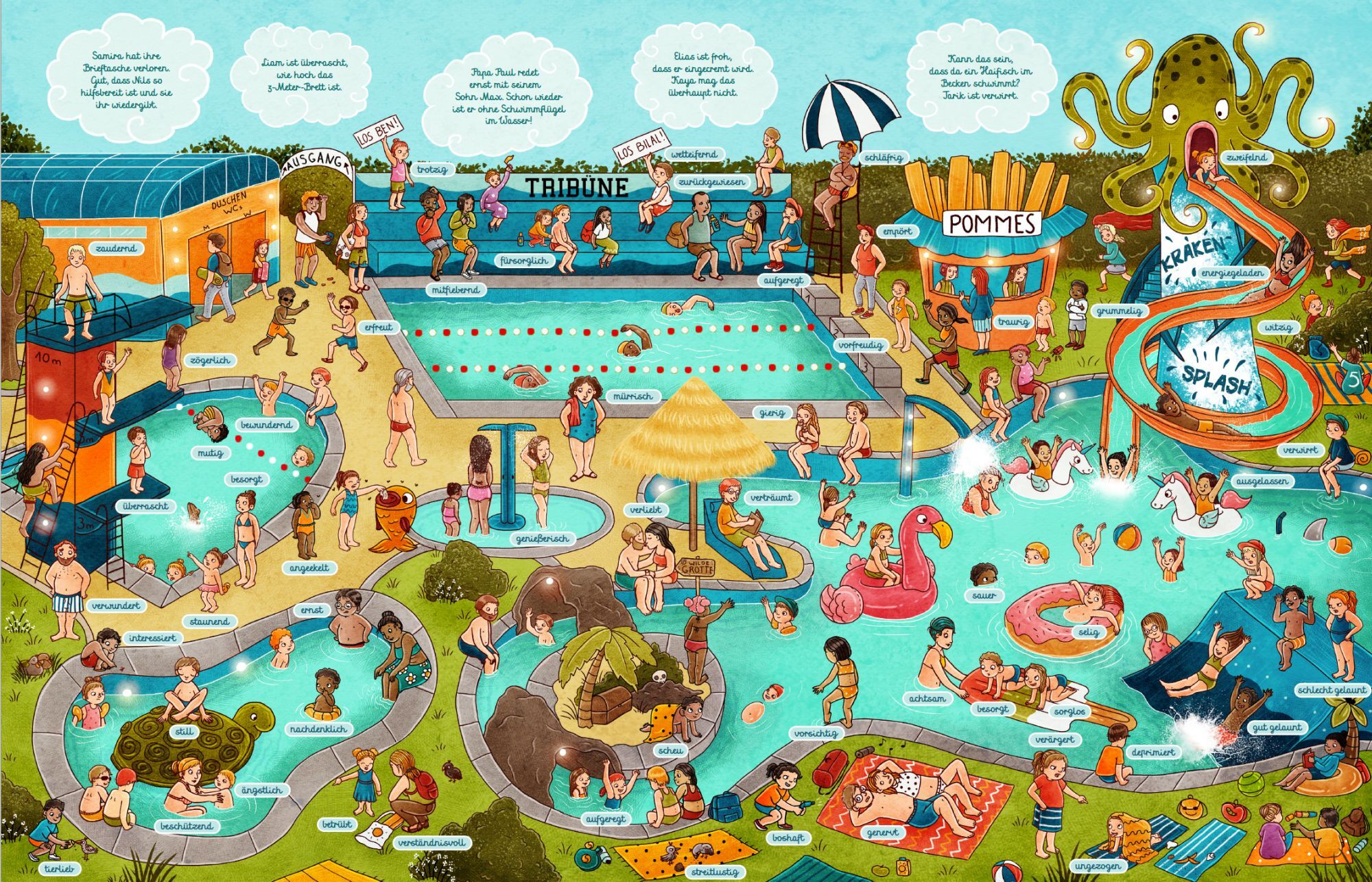Gefühle Wimmelbuch Was sind Gefühle? Freude, Ärger, Traurigkeit, Angst, Scham, Ekel, Liebe und Überraschung. Du kennst sie alle, hast sie schon mal in dir gespürt oder bei anderen gesehen. Wähle ein Wimmelbild aus und wir machen uns gemeinsam auf die Suche nac...