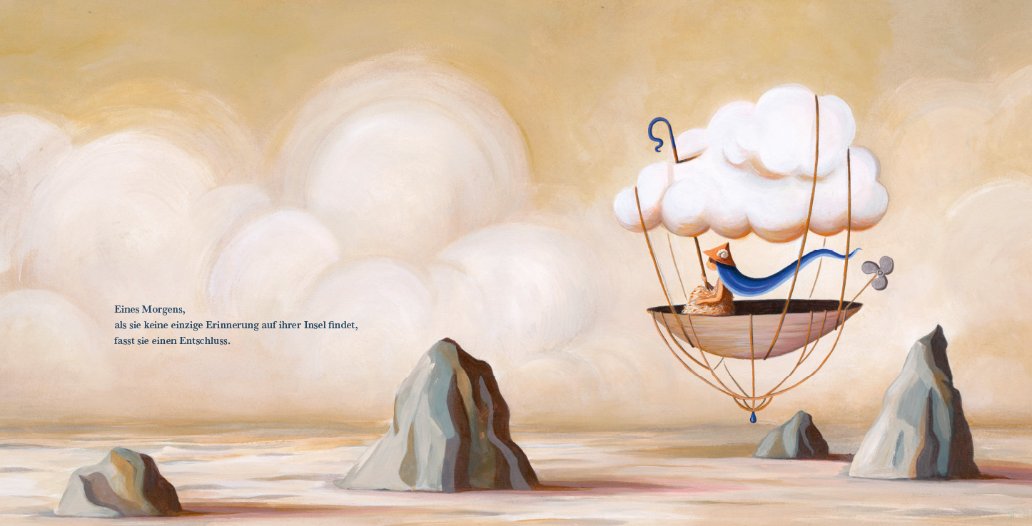 Alva lebt allein auf einer Insel. Jeden Tag kommen Erinnerungen an. Wie kleine Wolken. Manche sind schwer, andere ganz leicht. Große und schöne Momente, aber auch kleine zarte Andenken der Menschen. Alva putzt und poliert sie, und bewahrt sie auf. Doch eines T...